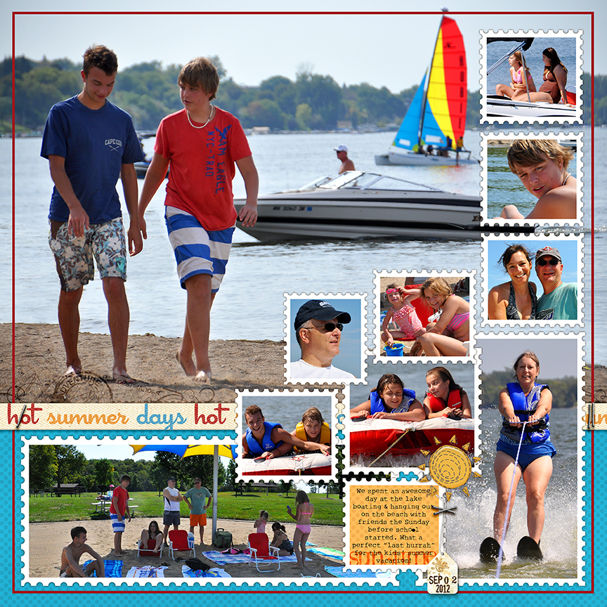 I have to say, looking back at my more recent pages, I really do seem to like multi photo pages. Maybe it's just because I have such a hard time deciding what photos I am not going to put on my pages. I always try and make sure, when we're doing something with a group, that everyone (or at least as many people as possible) are in the pages so years down the road we can look back and see everyone in our younger days! That's important, right?!
